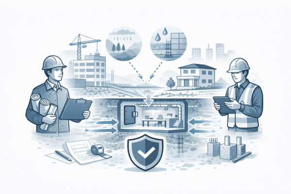 また、地下水の流動は、地下埋設管や基礎部分の耐久性にも影響を与えます。これらを正しく管理し、環境にあわせた適切な止水工事を行わないと、長期的な安全性に危険が及びかねません。設計図の数字だけに頼らず、施工前・施工中において、天候や地下水の状況をリアルタイムで把握し、その変化に応じて対策を調整することが求められるのです。