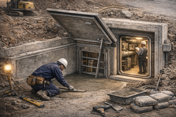 地下型シェルターは、地表から地下へ設置されることで、外部からの脅威に対して高い防護性能を持つシェルターです。このタイプは、核爆発による熱や放射線、衝撃波を軽減するために設計されています。