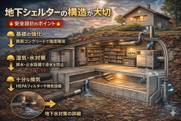 これらの条件をクリアすることで、住宅における核シェルターが安全で機能的な空間になります。一戸建ての家庭でも、命を守るための選択肢として十分に効果を発揮します。