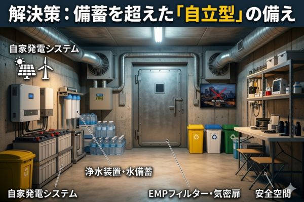 関西圏におけるEMP攻撃やその他の非常事態が発生した場合、多くの生活面が急激に変化する可能性があります。このようなシナリオを想定し、適切な備えを整えることが重要です。しかし、単に物資を備蓄することだけでは不十分な理由と、独立電源や安全な空間がなぜ重要なのかについて考えてみましょう。