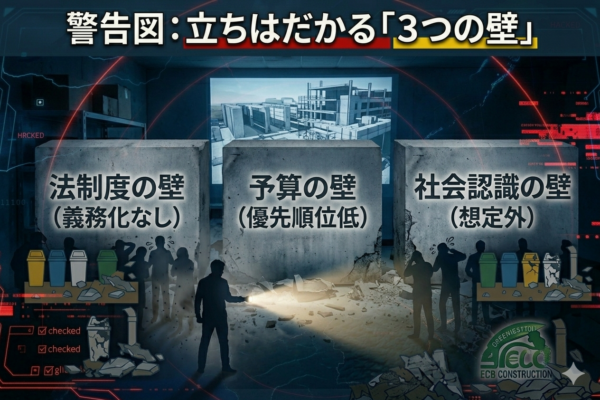 日本における避難施設の整備は、多くの課題を抱えており、その進展は遅れています。特に公共の場においては、法律、予算、そして社会の認識といった複数の壁が存在します。この章では、これらの要因について詳しく解説します。