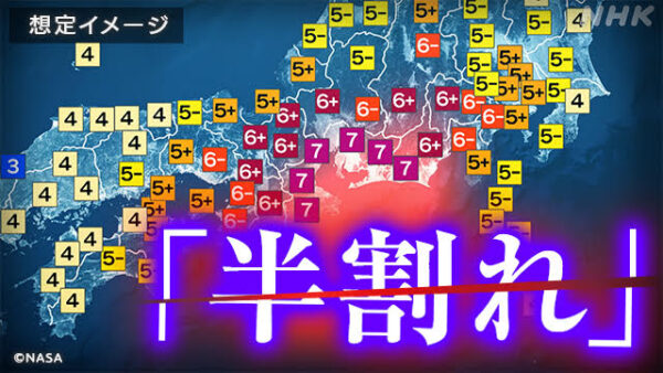 内閣府によると、南海トラフ地震の30年以内発生確率は70〜80%。